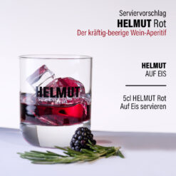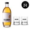 Eine Flasche HELMUT der Rote im Set mit zwei passenden HELMUT Gläsern.