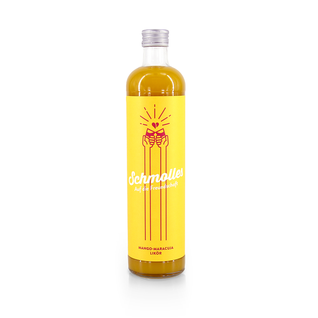 Süß-sauer im Geschmack mit exotischer Mango, Maracuja und dem Anklang unseres HELMUT Rum, Vanille und einer feinen Kokosnote – das ist unser Schmolles Mango-Maracuja Likör.