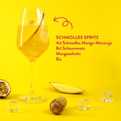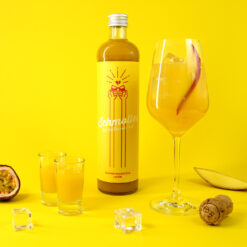 Mango-Maracuja: Süß-sauer im Geschmack mit exotischer Mango, Maracuja und dezenter Kokosnote – das ist unser Schmolles Mango-Maracuja Likör.