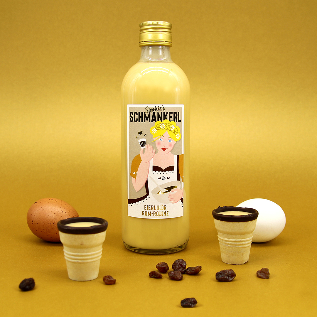 Die Idee: Sophie´s Schmankerl fokussiert sich auf Süßes und Sahniges. Und tatsächlich gab es die Sophie wirklich. Im 18ten Jahrhundert lebte sie als Frau eines Diakons in Augsburg und kochte und backte leidenschaftlich gerne. Ihr gelang es sogar in dieser Zeit einen Verlag zu überzeugen, welcher ihre Rezepte in einem Kochbuch veröffentlichte und es über 70 Jahre zum Bestseller werden ließ. Vor diesem Hintergrund und dieser Leistung haben wir ihr zu Ehren unsere neue Marke Sophie´s Schmankerl genannt. Da nun ein Eierlikörkuchen zu unseren Favoriten zählt, haben wir beschlossen einen Eierlikör zu entwickeln.